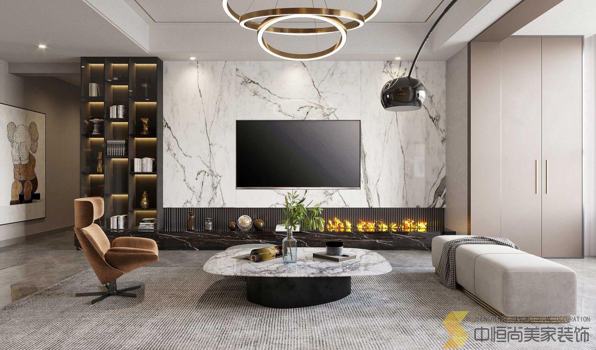 • 轻奢是装饰设计以高品质和简约为基础。设计简洁大方,时尚,前卫,优雅,给人温暖舒适的感觉。与每个人都熟悉的现代风格相比,它具有更多的品质和设计感;它揭示了生活的纯洁与纯洁,它融合了奢华与内涵的气质。现代轻巧豪华风格更注重生活质量,装饰上面的外观一般简约豪华,为每一位业主营造一个完全放松的家居环境。所以装饰还是会选择一些柔软的装饰,让房间更温暖。客厅1.电视背景采用大理石装饰饰面,表面光洁细腻,纹理自然流畅,有很高装饰性,下方内嵌电子壁炉的设计,营造了一个健康温馨的家居环境。客厅2.沙发背景墙隐形门的设计与周围木色一致,具有很高整体性。以深木色、米黄色为主,软装适当的点缀,提升了空间的层次感。