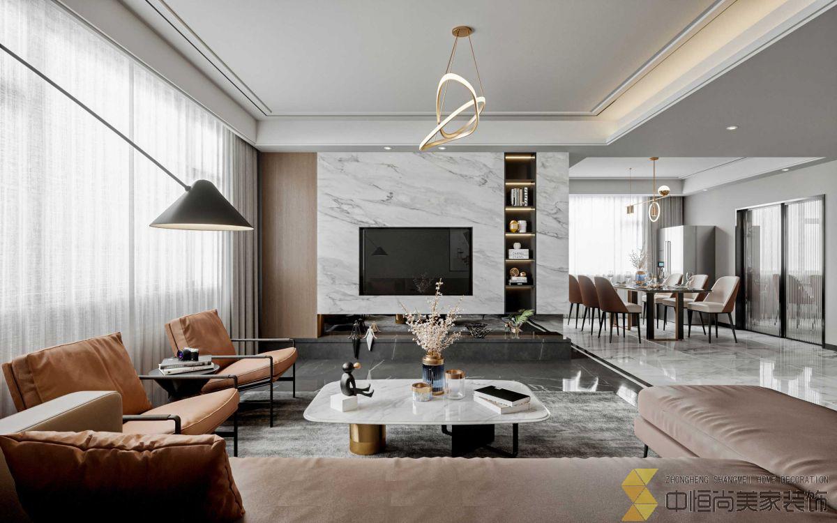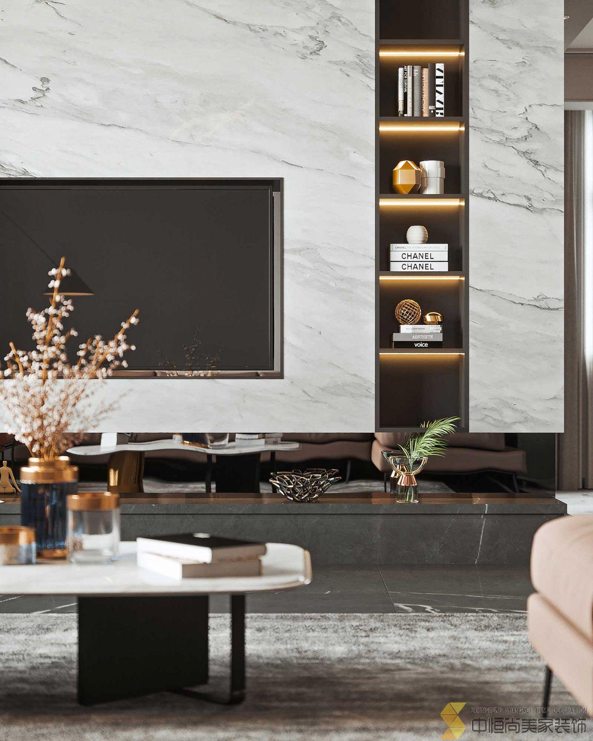 • 轻奢风格的空间以皮革、金属、大理石为主,用色彩的浓度传递细腻的质感,在现代简约风格的基础上,营造出一个稳定、温馨、协调的空间感受。