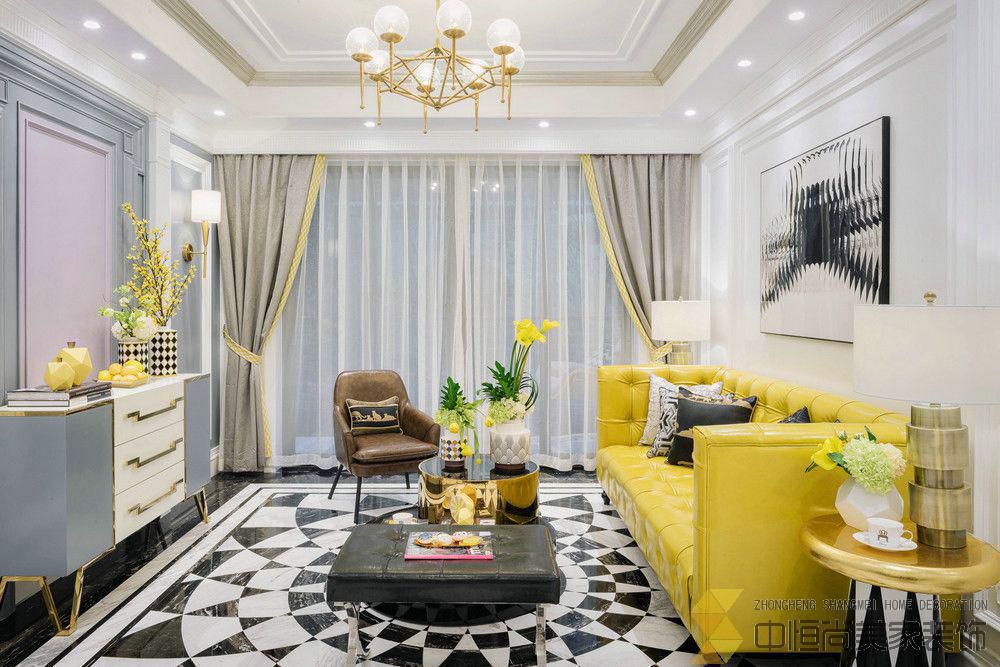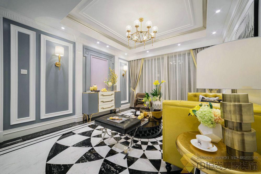 • 本案定位于时尚英伦风格,清新淡雅与绅士内敛,总带着一股温馨和时尚的气息,透露着西方世界里骨子里那般浪漫的情怀。不时出现的金黄色无意成就了空间的暖调,搭配水晶、碎花、格子图案等英伦元素,巧妙的将时现代时尚风格与英伦情结融为一体。设计师充分考虑到硬装与软装的一致性,除了保持线条的整体简约,在灯池、脚线、墙面的处理上,也融合了家具的色彩与造型,塑造出截然不同的空间气质。