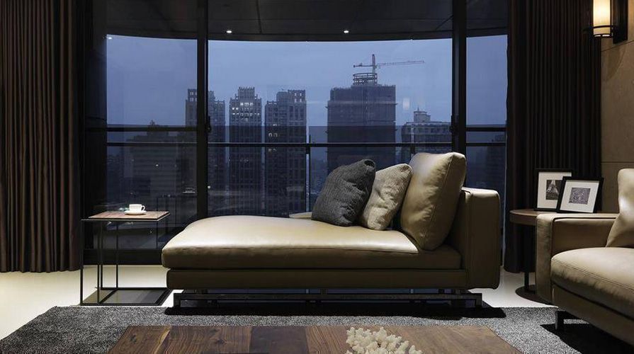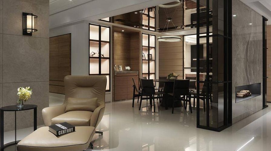 让窗景在眼眸间流动,映照出最写实的生活画面。这是欣磐石建筑室内设计对于住宅设计的最强理念。 想让居室拥有最大视野,设计师罗仕哲在整体设计上采用净空手法处理。因此,电视主墙以窗取代,透过风琴帘的自由切换、分开明暗。而后方原本封闭的书房空间,则借以玻璃材质为中介,呈现半开放式的场景。不仅满足了供桌需要对窗的风水考量,也让阅读时刻也有了景观的享受。