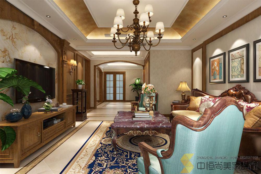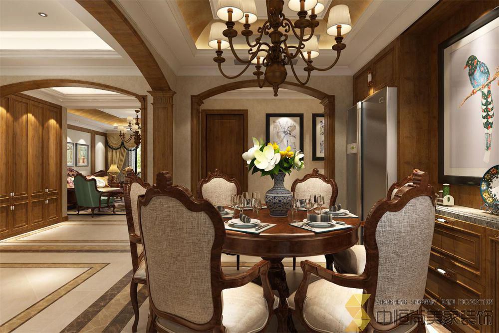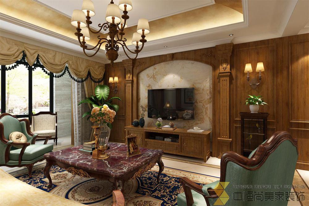 • 本案突出“沉稳”的特质;将古典美式元素与现代设计手法相结合,通过现代的设计手法,使空间在拥有美式沉稳大气的同时又省去了古典美式式的过分繁复。几分“俏皮”的绿色以及不拘一格的软装点缀。使整个空间设计高贵大气,彰显客户高生活格调及品位。