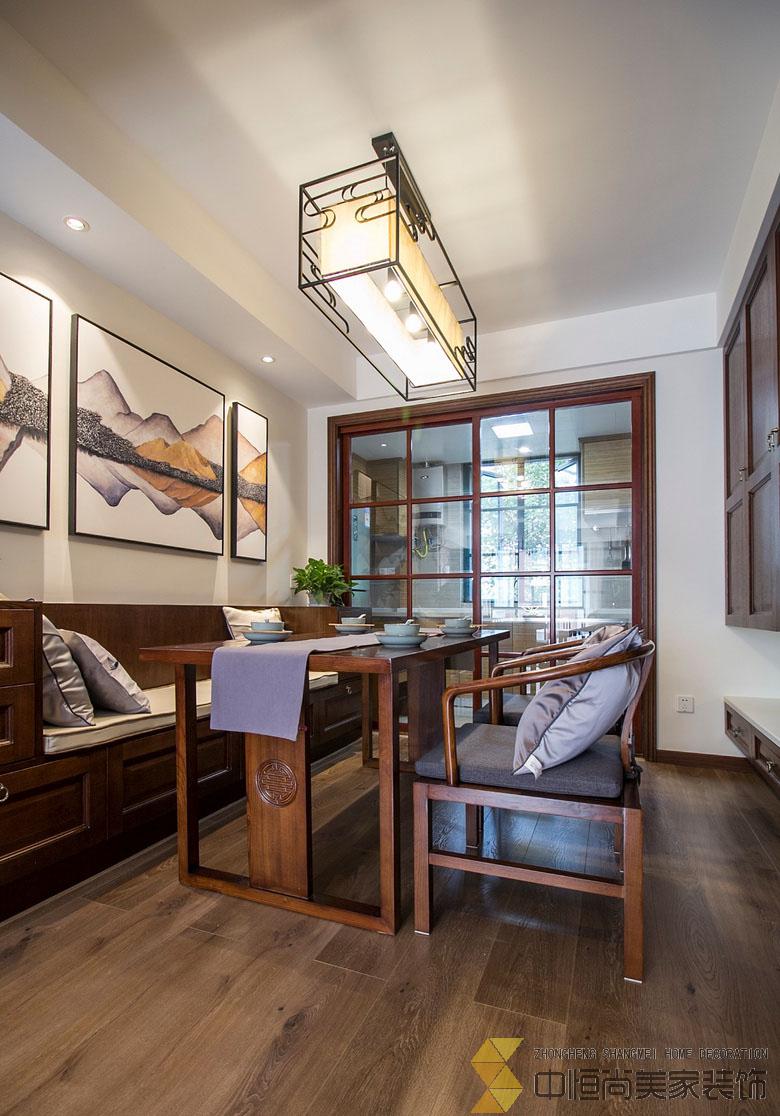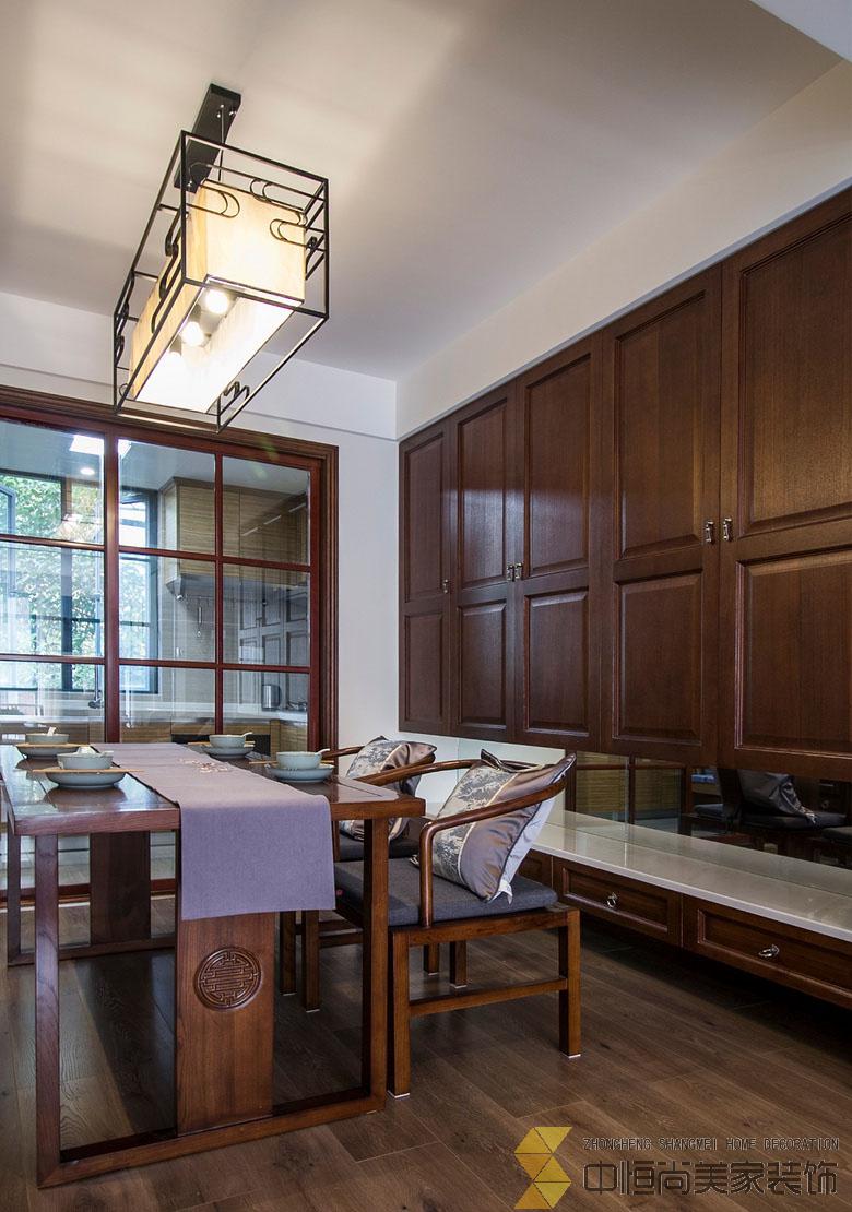 • 设计抛却以往中式设计中所使用的中国红,选用淡雅的杏色,让整个空间都透露着年代的沉淀感,多了几分书香韵味,少了以往中式设计中的威严与奢华,整个空间显得温馨而恬淡,家的感觉更加浓厚。