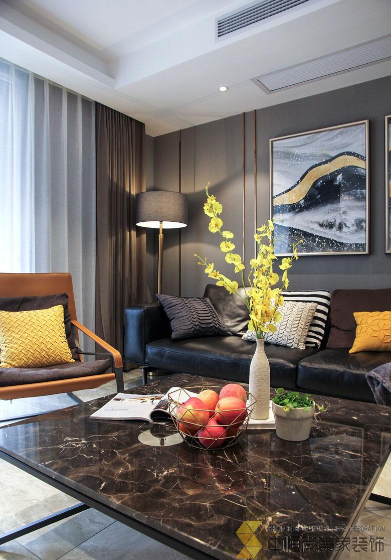 • 本案是典型的时尚奢华加入金属元素的港式风格,体现出主人的品味,整体色调灰色,小资年轻业主最好的选择。