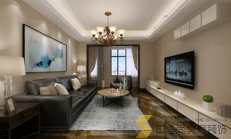 • 设计亮点: 1.厨房做开放式厨房,增加倒台,使厨房面积最大化利用 2.主卧门改位置,增加端景,主卧增加衣柜空间 3.压缩书房空间,增加房子的储物空间 业主是一家三口,女儿在读研究生,平时外人亲戚流动比较少,男主是一位生活讲究的生意人,对家的要求较高,客厅沉稳大气,以深色地砖和暖灰的墙布来做整体背景色,以大气的皮质沙发来凸显家具的高级感,营造整体舒适温馨的环境。卧室宽敞明亮,简洁的造型,搭配拼接方格木地板,清新自然。