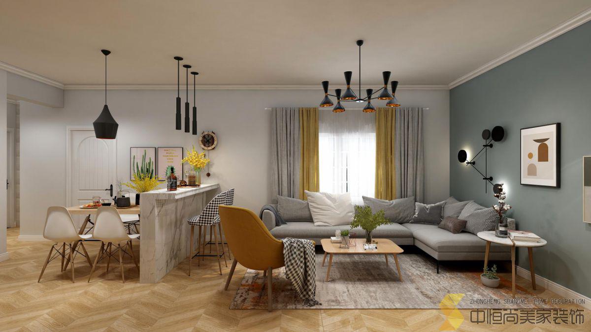 • 本案整体设计大量运用了少了木质元素,木质材料的温润,搭配空间摆放的绿植,带来了自然清爽的感觉,空间布局合理。简约的北欧空间,没有华丽的设计,以干净、简洁的线条为主。加入金属元素进行点缀,让简洁的空间更具深度,也更加精致美观。