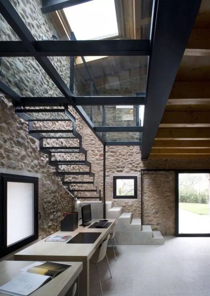 一般像S形的设计就是既节约空间又能达到设计感的要求,这样的楼梯在家装和工装中也时独得恩宠。