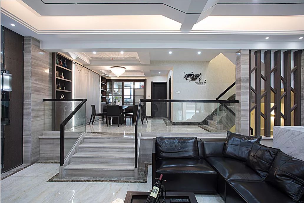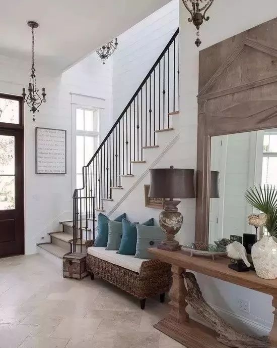 比如木质的楼梯噪音大,铁质的扶手冰凉, 抛弃两者的缺点,把优点结合起来,就是很好的组合。其他还有木质跟玻璃、大理石跟玻璃等。