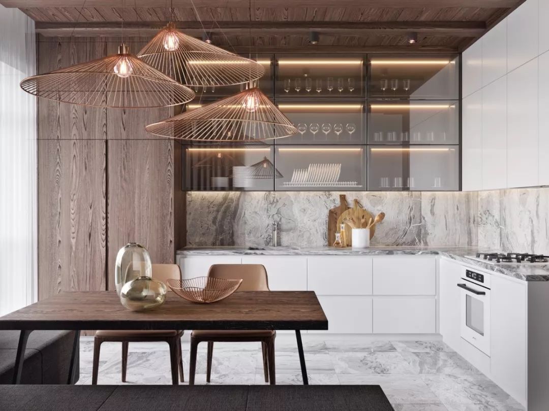 无论是封闭整体厨房,还是现代开放式厨房,通过不同的色彩和风格,配合整体新房装修风格。让你在制作美食的过程中,更享受舒适的空间。希望你们喜欢今天的厨房装修效果图,吸收更多更有用的装修灵感。
