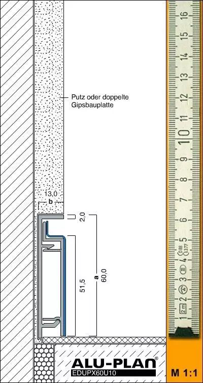 金属踢脚(内凹式)与石膏板墙构造