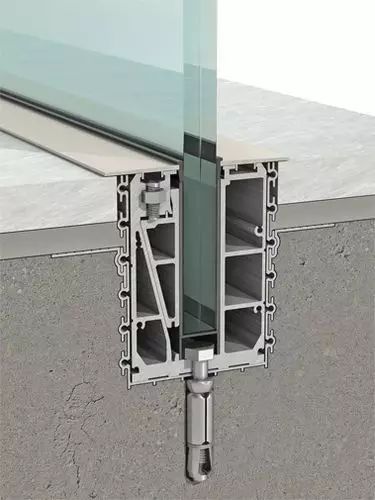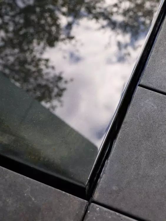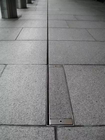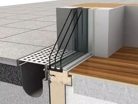 玻璃窗与室外石材地面排水槽