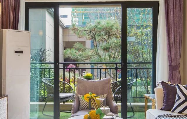 客厅与阳台采用中空双层玻璃推拉门分隔