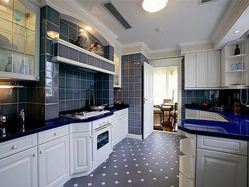 2.厨房区域在操作时,环境是高温环境,所以在瓷砖颜色方面应选冷色或浅色为主,比如白色、浅绿、灰、蓝、黄等,这样可在高温下感受春天凉意,还能让空间扩大,不会那么沉闷和压抑。