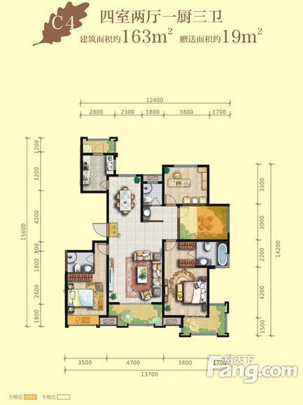首页 > 找我家 > 明威橡树湾 > 户型:4居163平米