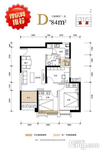 首页 > 找我家 > 西安合能朱阙小区 > 户型:3居84平米