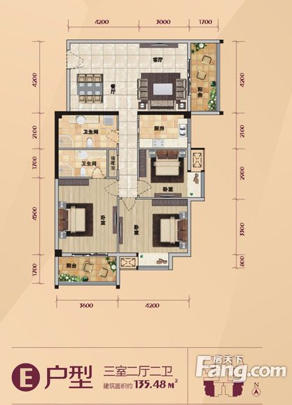 户型:3居135平米