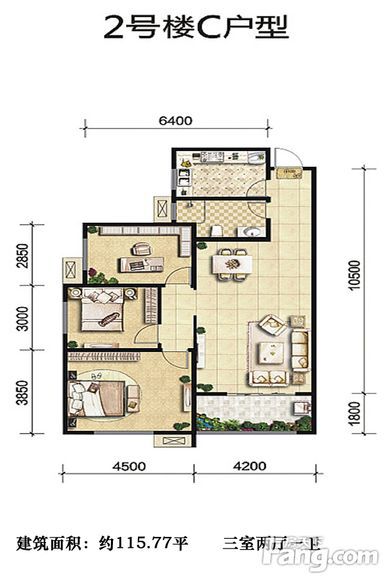 户型:3居115平米