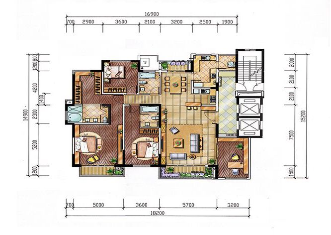 户型:4居245平米