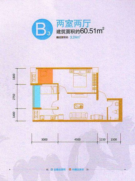 户型:1居室60平米
