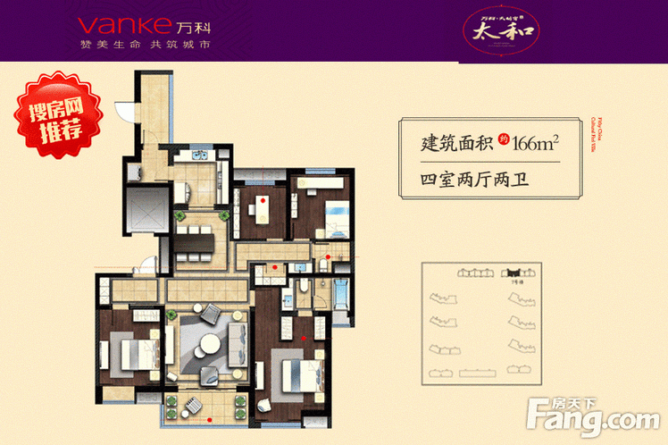 首页 > 找我家 > 西安万科大明宫小区 > 户型:4居室166平米