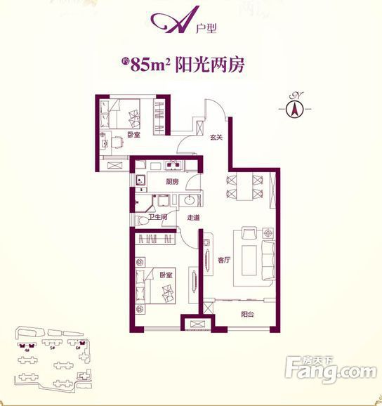 首页 > 找我家 > 保利·金香槟小区 > 户型:2居室85平米