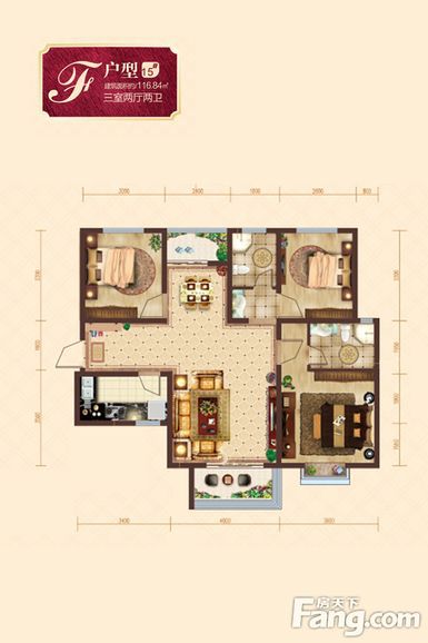 户型:3居室116平米